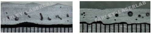 圖1   鋁合金焊接時氧化膜氣孔(左)和冶金氣孔(右)